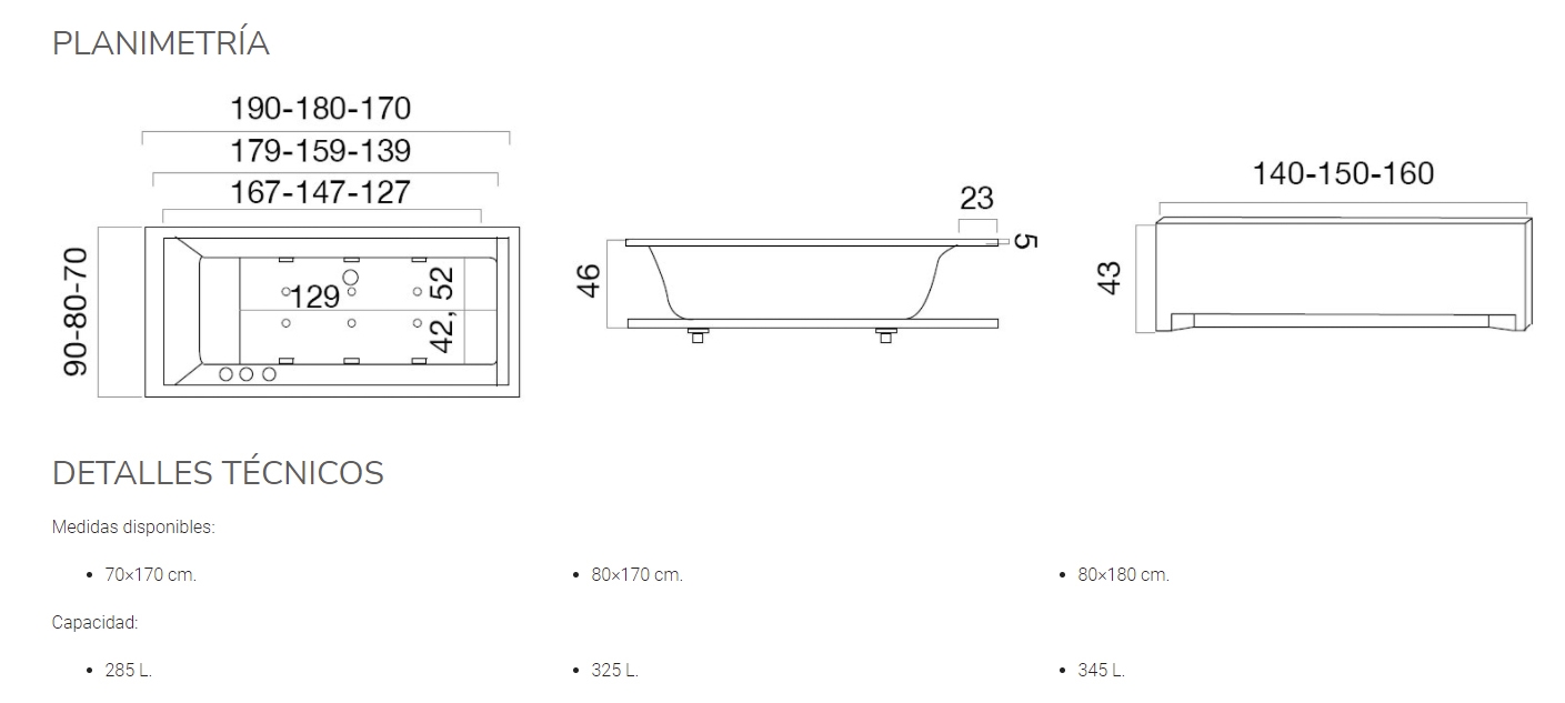 BANYERA HIDROMASATGE 180x80cm AYORA 2 TOP LINE