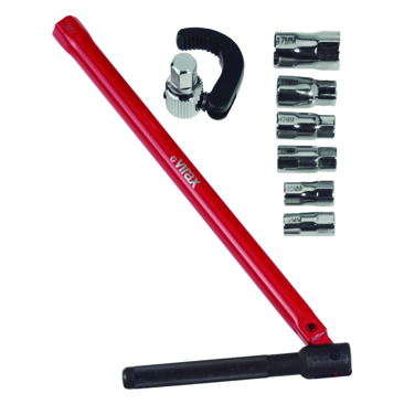 Para el montaje y el desmontaje de los grifos y grifos mezcladores con fijación con tuerca. Brazos huecos de 25 cm de longitud. Virola hueca para tuercas hexagonales de 13 mm.